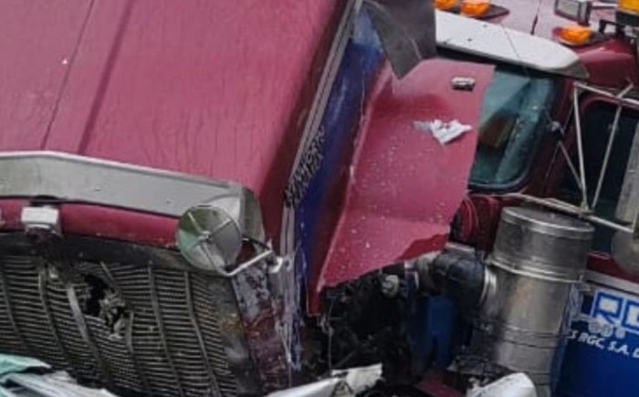 Las autoridades revisaron la cabina del trailer marca Kenworthcon colores rojo y azul de la empresa Fletes RGS Autotransportes S.A. DE C.V., con número económico 158, pero no estaba el conductor.