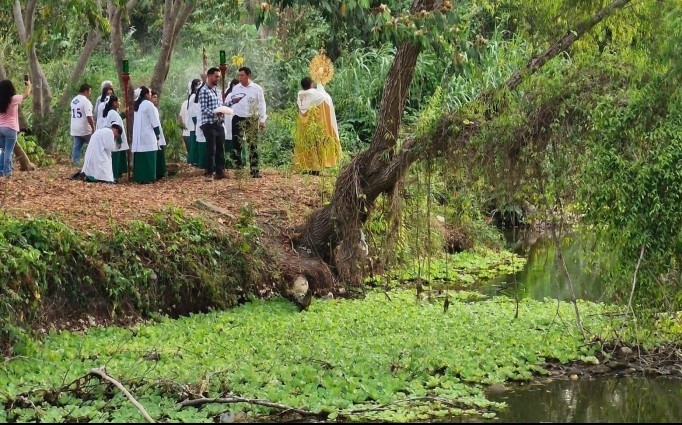 Poza Rica, Ver.- (AVC/Misael Olmedo) Preocupados por la falta de agua los habitantes de los municipios de Naranjos y Tancoco se unieron en oraciones para pedir por lluvias y poner fin a la sequía que ha provocado niveles bajos en el río Tancochin. Los integrantes de la comunidad católica de la parroquia San José de la Montaña en Naranjos recorrieron en procesión calles del municipio hasta llegar al lecho del río en donde se ofició una misa. En el caso de Tancoco integrantes de una iglesia cristiana también acudieron a realizar rezos al margen del río que señalan está en niveles críticos. El río Tancochin nace en el municipio de Tancoco, atraviesa Naranjos-Amatlán, Chinampa y desemboca en la laguna de Tamiahua. Sus bajos niveles han preocupado a los habitantes de la región en donde hay escasez de lluvias y otros afluentes también están en niveles críticos.