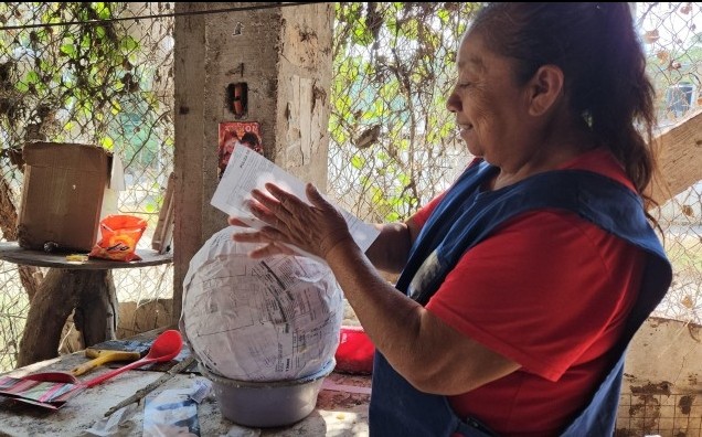 Poza Rica, Ver.- (AVC/Misael Olmedo) De manera tradicional y con sus manos como herramientas de trabajo, los integrantes de la familia Suárez Méndez elaboran cientos de piñatas que comercializan en la zona norte de Veracruz. Indican que desde noviembre se enfocaron en la elaboración de estas artesanías de cartón y papel. En un inmueble que adaptaron como su taller temporal para este trabajo en la colonia Los Sauces en Poza Rica el señor Ignacio Suárez Tolentino comenta que tiene más de veinte años dedicándose a la elaboración de piñatas y participa toda la familia. “Mi esposa y yo y parte de mi nuera, mi hijo, mis nietos, mi hija me ayudan al proceso de todo esto…está muy competitivo esto y nada más para irla pasando nada más…entregamos y compramos material que pues el material está demasiado caro, reciclamos, si una piñata la vendemos en ochenta, cien pesos a lo mejor se lleva un gasto de cincuenta, sesenta pesos”, comentó. Señalan que en esta temporada de este 2024 las condiciones de lluvia han ocasionado un retraso en la producción pues requieren de los rayos del sol para el secado del engrudo y papel. María Elena Méndez Cruz comentó que solamente es temporal la elaboración de la piñata pues en el resto del año se dedican al comercio ambulante de raspados. “Pues treinta, treinta o cincuenta cuando nos apuramos pero hay veces el clima como ahorita no llevamos ni treinta y ya qué hora es, por lo mismo que tenemos que meter y sacar por el agua que se viene”, comentó. Los artesanos agregaron que respetan la manera y forma tradicional de las piñatas y que buscan sean resistentes y con una buena decoración.