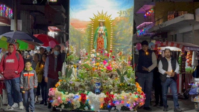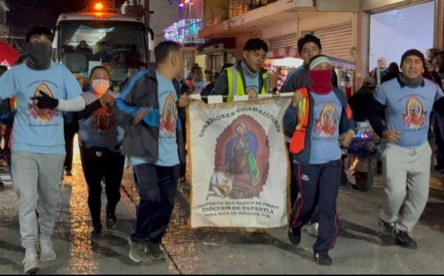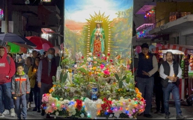 Poza Rica, Ver.- (AVC/Misael Olmedo) Cientos de creyentes católicos arribaron a la parroquia de Nuestra Señora de Guadalupe, en Poza Rica, para celebrar a la virgen en su día. En peregrinaciones o en solitario acudieron a la iglesia ubicada en la colonia Manuel Ávila Camacho para este popular festejo. Bajo condiciones de un descenso en la temperatura producto del paso del frente frío número 14 llegaron personas de todas las edades a la iglesia conocida como “La Lupita” y en donde se vive una fiesta tanto en su interior como en sus inmediaciones. En esta noche en Poza Rica se registra una temperatura mínima de 12 grados que aunque mantiene un ambiente frío no limita la fe en la virgen de Guadalupe, señalaron creyentes. Protección civil local no reporta algún incidente durante el desarrollo de las peregrinaciones en esta ciudad.