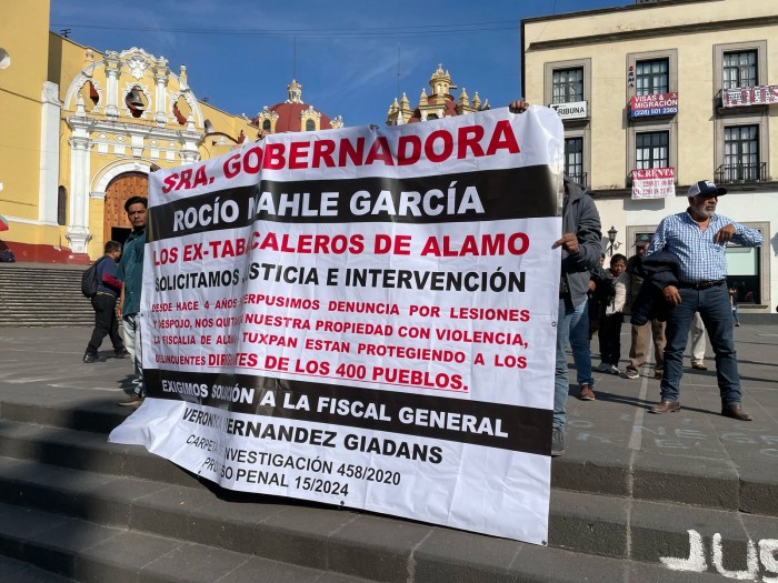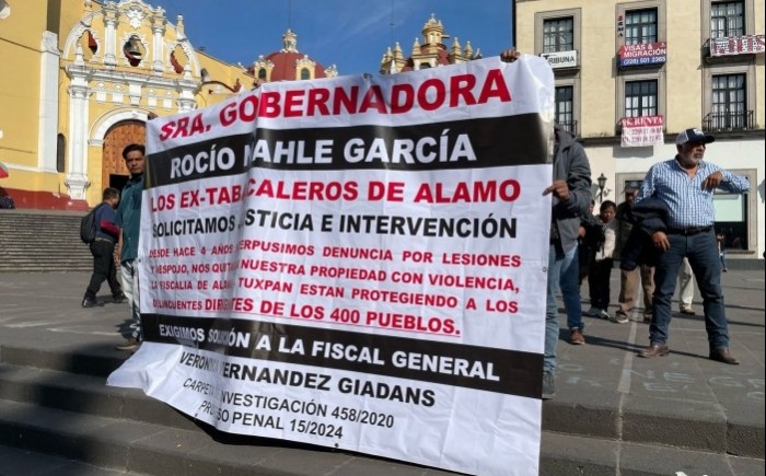 Xalapa, Ver.- (AVC/Verónica Huerta) Más de 400 jefes de familia se quedaron sin empleo desde el año 2020, a consecuencia de que los integrantes del Movimiento 400 Pueblos se apropiaron de las instalaciones de la empresa tabacalera “Tabamex”, señalaron los afectados. Este lunes, llegaron un grupo de 100 hombres y mujeres a manifestarse frente a palacio de gobierno para exigir a la Fiscalía General del Estado a cargo de Verónica Hernández Giadáns que realicen su trabajo, debido a que la Carpeta de Investigación 458/2020 y el proceso penal 15/2024 están detenidos. Los productores de tabaco procedentes del municipio de Álamo, Candelario Inés, Genaro Francisco Dolores, Federico Velasco Vargas y Maximino Márquez informaron que en septiembre del 2020, llegaron decenas de hombres de los 400 Pueblos con machetes y palos para desalojar a las personas que estaban en las oficinas. A partir de entonces, se apropiaron de las instalaciones, y los productores de tabaco se quedaron sin una empresa a la cual venderle.