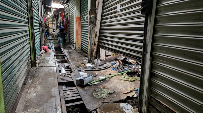 Indican que además de la deficiente red de drenaje también falta un techado adecuado para evitar más filtraciones de agua que incluso ha generado pérdida de mercancías para algunos.