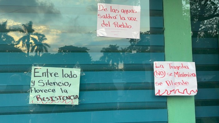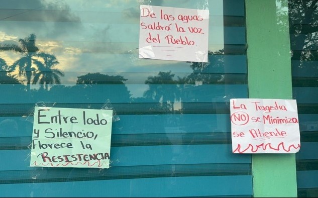 Colocaron mensajes en el acceso a oficinas municipales en donde destacaron que Poza Rica está pasando esta situación con el apoyo de la ciudadanía y no del gobierno.