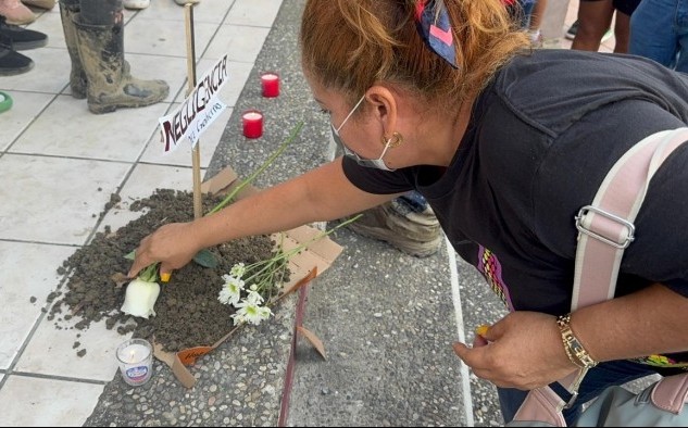 Poza Rica, Ver.- (AVC/Misael Olmedo) Luego de ocho días de la inundación en Poza Rica un grupo de habitantes protestó frente al palacio municipal en donde colocaron velas, flores y mensajes en memoria de las víctimas del desastre y acusaron negligencia de autoridades.