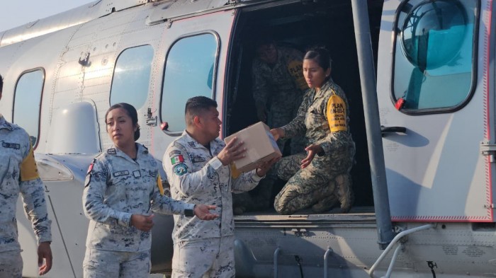 Víctor Hugo Lozano García, Comandante del componente aéreo para casos de desastres dentro del plan DN-III-E de apoyo a la población civil, explicó que desde el aeropuerto “El Tajín”, en Tihuatlán, se envían principalmente, alimentos, agua y medicinas a las zonas más afectadas y sin comunicación vía terrestre.