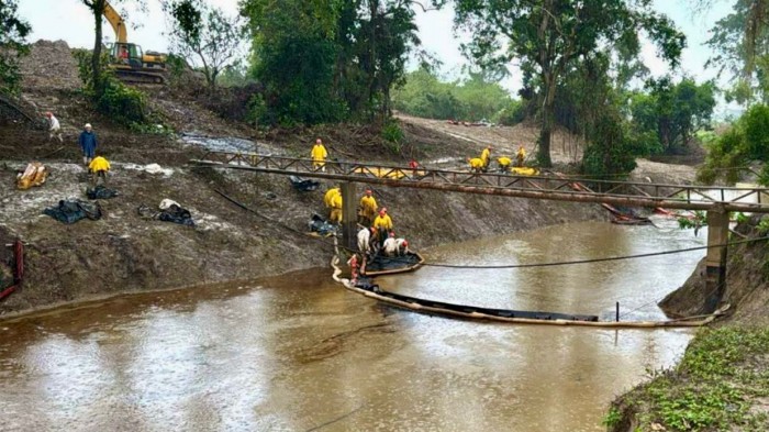 Poza Rica, Ver.- (AVC) Ante el escurrimiento de hidrocarburo que afectó el río Cazones en la zona de Poza Rica este fin de semana, personal de Petróleos Mexicanos (Pemex) colocó barreras y cordones oleofílicos y realizan acciones de limpieza. La empresa reportó que derivado de las fuertes lluvias registradas en las últimas horas en la región norte del estado de Veracruz se realizan trabajos de limpieza en las orillas del cauce del río Cazones, así como la colocación de barreras y cordones oleofílicos en la zona de la bocatoma de la Comisión del Agua del Estado de Veracruz (CAEV) de Poza Rica para contener las iridiscencias de hidrocarburos. Además de que las lluvias afectaron a la zona del municipio de Álamo Temapache, por lo que con el apoyo de compañías especializadas, reforzaron las barreras de contención instaladas en el arroyo El Cabellal, a fin de evitar el desplazamiento de trazas de hidrocarburo hacia el río Pantepec. Pemex afirmó que continuaran implementando los protocolos y acciones necesarias para garantizar la remediación de las zonas afectadas, al mismo tiempo de resguardar la seguridad de las comunidades cercanas y la preservación del medio ambiente. Las oficinas operadoras de la Comisión de Agua del Estado de Veracruz mantienen suspendida la captación y el suministro para en Coatzintla y Poza Rica. Mientras que la comisión municipal del agua en Tihuatlán (Comat) tampoco ha logrado restablecer el abastecimiento por daños en sus equipos de bombeo. Cabe destacar que el río Cazones es la única fuente de abastecimiento de agua natural en la zona y las recientes lluvias aumentaron su nivel y generaron condiciones de turbiedad. Mientras que desde el viernes se reportó presencia de hidrocarburo en el afluente y no se logró reactivar los equipos de captación.