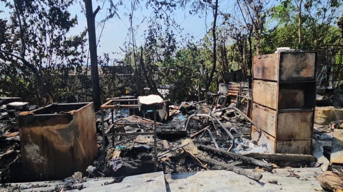 Román de la Cruz indicó que además de su vivienda perdió mercancía que almacenaba para su actividad comercial. “Yo vendía libros y jabón a granel. Ahí estaba toda mi inversión y ahora todo está quemado”, dijo.