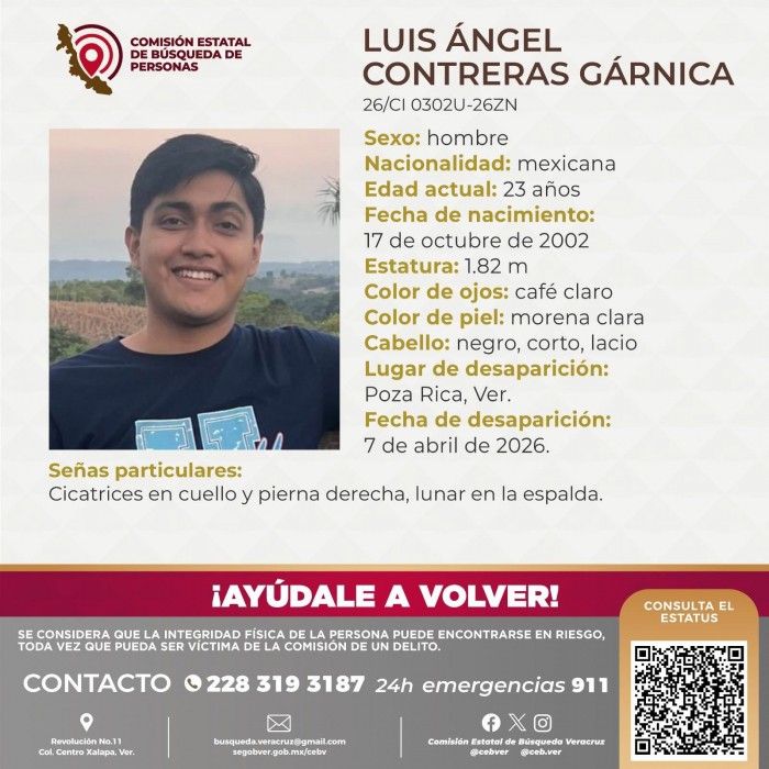 La Comisión Estatal de Búsqueda de Veracruz emitió una ficha de búsqueda con sus señas particulares, solicitando el apoyo de la ciudadanía para aportar cualquier información que permita dar con su paradero.
