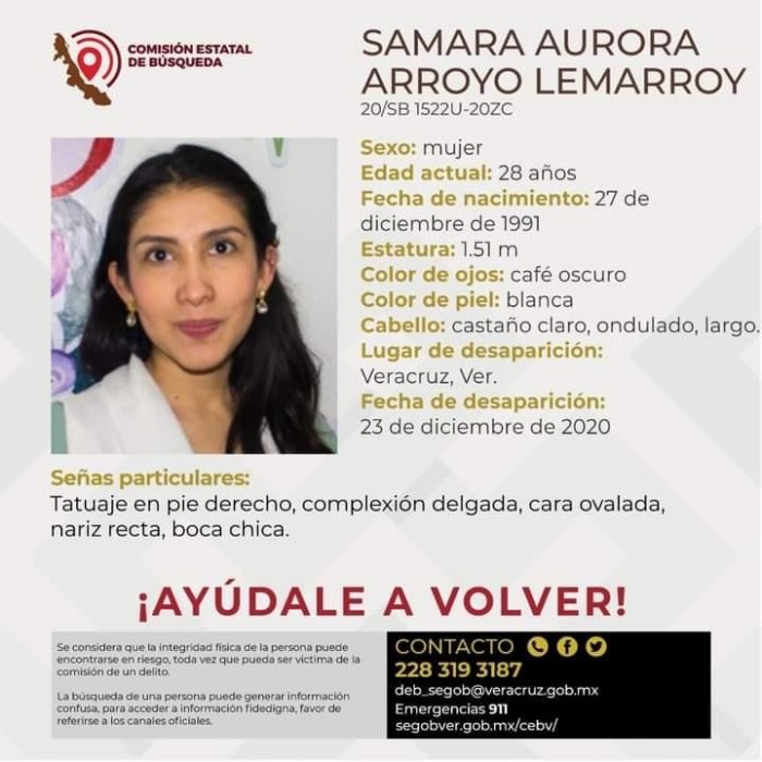 Actopan, Ver.- (AVC/Sergio Aldazaba) A cinco días de la desaparición de la joven nutrióloga Samara Aurora Arroyo Lemarroy, un sujeto que presuntamente la conoce fue detenido cuando se desplazaba en la camioneta de la víctima.