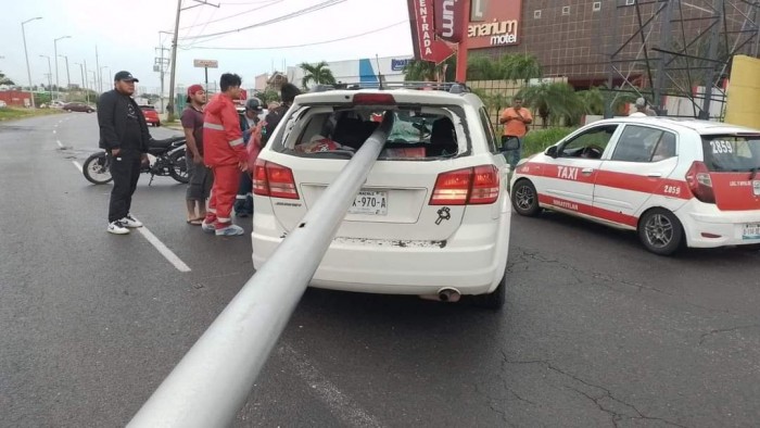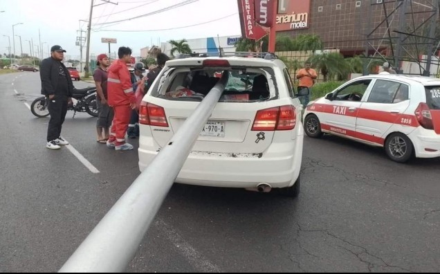 Coatzacoalcos, Ver.- (AVC/Maythe Morales Ramos) Las rachas de vientos 60 a 85 kilómetros por hora, producto del Frente Frío (FF) número seis, provocaron que un poste metálico de alumbrado público, se viniera abajo, cayendo sobre un vehículo en movimiento y privando de la vida al conductor de la unidad. Los hechos acontecieron la tarde de este domingo 15 de octubre sobre Avenida Universidad Veracruzana a la altura de los moteles Secreto y Escenarium de la colonia Las Gaviotas del municipio de Coatzacoalcos. La víctima fue identificada como Alfonso Cruz de la Cruz de 55 años de edad, quien habría salido de su domicilio ubicado en la calle Pez Dorado 101 del fraccionamiento Puerto Esmeralda para realizar las compras del súper mercado junto a otros miembros de su familia. El hoy extinto se desplazaba a bordo de una camioneta marca Dodge, tipo Journey, color blanco aperlado, con placas de circulación YNX-970-A del Estado de Veracruz. El poste metálico atravesó la unidad entrando por el parabrisas y saliendo por el medallón causando un corto a la altura de la yugular a la víctima, al momento en el que transitaba de oriente a poniente. La unidad quedó atravesada sobre la referida Avenida debido a los intento de don Alfonso por esquivar el golpe, sin embargo, el poste colapso de manera inesperada. En el lugar, el personal de la Cruz Roja y Protección Civil atendieron a los otros integrantes de la familia que solo resultaron con golpes. La zona fue acordonada por elementos de la Policía Estatal, mientras que personal de Servicios Periciales levantó el cuerpo y ordenó su traslado al Servicio Médico Forense (SEMEFO), para su posterior identificación y reclamo formal por parte de los familiares. Cabe hacer mención que el 26 de octubre del 2022 un pino colapso al momento en el que circulaba un repartidor de agua purificada sobre el bulevard Manuel Ávila Camacho también conocido como antigüo Malecón y de igual le arrebató la vida.