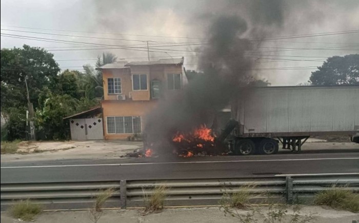 Coatzacoalcos, Ver.- (AVC) Un tráiler fue incendiado la mañana de este domingo en el ejido 5 de Mayo, en Coatzacoalcos. Dos personas en motocicleta habrían lanzado artefactos tipo bomba molotov contra la unidad. El hecho activó un operativo de seguridad y emergencia en la zona. El ataque ocurrió durante las primeras horas de este domingo en una vía cercana al ejido 5 de Mayo, en el municipio de Coatzacoalcos, al sur de Veracruz. De acuerdo con reportes preliminares, dos individuos que se desplazaban en motocicleta arrojaron artefactos incendiarios contra la unidad de carga. El fuego se propagó en la cabina y parte del remolque, consumiendo gran parte del vehículo. Tras el reporte al número de emergencias, acudieron elementos de corporaciones de seguridad y personal de auxilio para controlar el incendio y asegurar el perímetro. Hasta el momento no se ha informado de personas lesionadas. Las autoridades iniciaron las diligencias correspondientes para determinar responsabilidades y ubicar a los presuntos responsables. El caso se suma a otros hechos recientes registrados en la región sur del estado. Las autoridades mantienen presencia en la zona mientras avanzan las investigaciones.