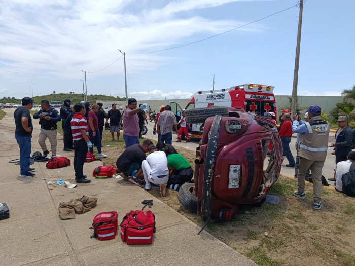 Coatzacoalcos, Ver. (AVC/Maythe Morales).— Un accidente vehicular registrado en el malecón costero de Coatzacoalcos, a la altura del hotel Holiday Inn, dejó como saldo cuatro personas lesionadas, dos de ellas en estado grave.