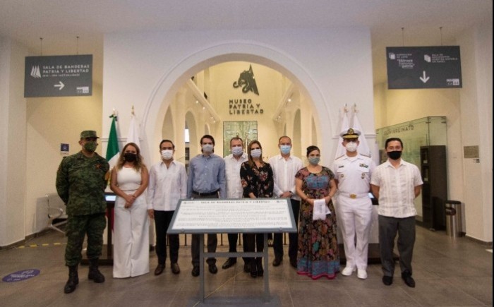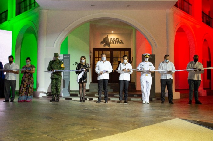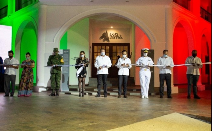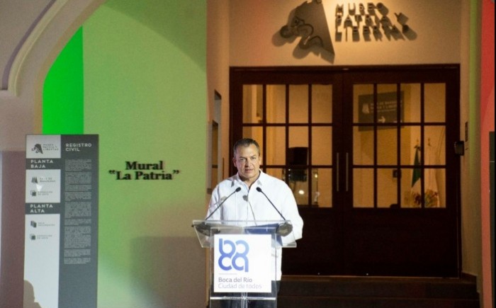 Boca del Río, Ver.- (AVC) La noche del miércoles el presidente municipal de Boca del Río, Humberto Alonso Morelli, inauguró el Museo Patria y Libertad, que se encuentra en el recién remodelado Registro Civil de la ciudad. El alcalde boqueño estuvo acompañado por su esposa e hijo; también por el alcalde de Veracruz, Fernando Yunes Márquez; CGDEM Saul Hirám Bandala, sudirector de la escuela Naval Militar y representante de la Primera Región Naval; Coronel de Infantería Sergio Medina Aranda, comandante del 83 Batallón de Infantería; Ramón Gómez Barquín, presidente del Patronato del Sistema Museográfico y director general de Grupo Gruver; Mtro. Arq. Carlos Sanabia Velázquez, artista y muralista de “Héroes Fragmentos de la Patria”; directora del Instituto Veracruzano de Cultura, Silvia Alejandré Prado; representante del INAH en Veracruz, Francisco Martínez Muñoz Espejo; Oficial del Registro Civil, Edgar Cancino y; funcionarios municipales. El alcalde explicó que el recinto alberga 119 piezas entre ellas, 12 libros desde la época del Virreinato, y un libro perteneciente a la colección privada de Don Miguel Hidalgo y Costilla con firma autógrafa, se trata del libro: Traducción literal en una muy breve paráfrasis del libro de Tobías del año 1789; 41 documentos, incluyendo un original del Himno Nacional de 1910, cartas y diplomas firmados por expresidentes, afiches de campañas políticas de mediados del siglo XX, entre muchos otros; 27 medallas originales de condecoración que datan desde 1856; 6 armas originales que datan desde 1853 y espadas de la independencia; réplicas de las más representativas de los diferentes momentos históricos hasta la actualidad, cada una de ellas fue elaborada a mano con la misma técnica, telas y tamaños que fueron hechas originalmente; 14 cuadros originales que forman la colección Héroes, Fragmentos de la Patria. Para culminar, dentro del elevador panorámico se aloja un majestuoso mural de 31 metros cuadrados pintado por el Mtro. Arq. Carlos Sanabia Velázquez. La obra, pintada en acrílico, tomó 240 horas de trabajo, entre el 13 de septiembre y el 13 de noviembre. Humberto Alonso Morelli precisó que la totalidad del museo y la exhaustiva remodelación del registro civil, tuvieron una inversión de 6.8 millones de pesos. El alcalde de la ciudad detalló que en la sala de Banderas es una representación de la historia a través de las banderas que han dado identidad a nuestro país “que han sido símbolo de lucha, de poder, de guerras, y por último, de unión. Cada una de ellas interpreta desde sus hilos, una huella imborrable en el diario de este país”. Mientras que la colección Nuestra Historia en papel dirige hacia una serie de documentos, objetos y libros sobresalientes e interesantes; “algunos de ellos escritos para hacer historia, como el Himno Nacional o los nombramientos de comandantes de guerra; otros, se redactaron sin suponer que fueran a trascender; pero sin duda todos ellos, de una manera u otra forman parte de nuestra Patria y Libertad”, afirmó Morelli. En cuanto a la colección de arte Héroes, Fragmentos de la Patria y el Mural La Patria ambos realizados por Carlos Sanabia Velázquez, artista boqueño, son una interpretación muy particular de los héroes de la Independencia y la Revolución Mexicana, el artista explora un lado sumamente original de los personajes de esas épocas, plasmando una mezcla de historia con tradiciones y leyendas. El presidente municipal culminó el evento con la siguiente frase: “Este recinto rinde honor a esos héroes de los siglos XIX y XX y al conjunto de hechos que hoy, nos revisten con verde, blanco y rojo. Que hoy, nos representan con un águila que simboliza el valor, la lucha y la libertad, que hoy, cada 15 de septiembre, nos hace gritar: ¡Viva México!”