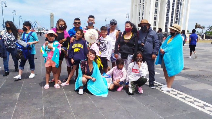 Veracruz, Ver.- (AVC/José Juan García) La familia Salazar, originaria de Chimalhuacán, Estado de México, planeó visitar la ciudad de Veracruz en el 2020, sin embargo, el viaje lo pospusieron debido a la pandemia del coronavirus. Fue para este periodo vacacional de la Semana Santa que la familia Salazar decidió viajar a esta ciudad, para lo cual rentaron un autobús, ya que está conformada por 45 integrantes, entre hermanos, tíos, primos, esposas e hijos. Los Salazar llegaron la mañana del viernes santo a la ciudad y puerto de Veracruz, donde permanecerán hasta el domingo. Cristian Salazar Manzanilla comentó que el encierro provocado por la pandemia del coronavirus resultó complicado, por lo que confió en que su estancia en esta ciudad les permita distraerse de lo vivido en el último año. “Más que nada para que se distraigan los niños porque tuvieron un año sin escuela, con un par de días se distraen un rato, la verdad todo esto de la pandemia ha sido un poco difícil”, expresó. Salazar Manzanilla dijo que los integrantes de la familia Salazar portan el cubrebocas y utilizan el gel antibacterial para prevenir el contagio del coronavirus. “También podemos contraer el virus”, añadió. El mexiquense refirió que se trata de la segunda vez que visita la ciudad de Veracruz, pero es la primera que lo hace acompañado de su familia. El joven destacó que con los ahorros que realizaron reservaron habitaciones de un hotel antes de viajar a Veracruz con la finalidad de garantizar su hospedaje ante la posibilidad de que este destino turístico fuera abarrotado en este periodo vacacional de la Semana Santa. Cristian Salazar mencionó que su idea inicial era llegar directo a las playas de Veracruz, pero optaron por recorrer el malecón debido a las rachas de viento. “Apenas tiene unas horas que llegamos, estamos empezando a dar el recorrido con la familia, teníamos pensado llegar a la playa, pero como hay viento no se presta para ir, en unas horas más que se calme iremos para allá, queremos disfrutar un rato de este lugar que es Veracruz, que es bonito”, concluyó.