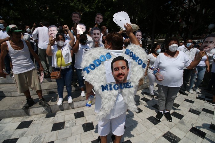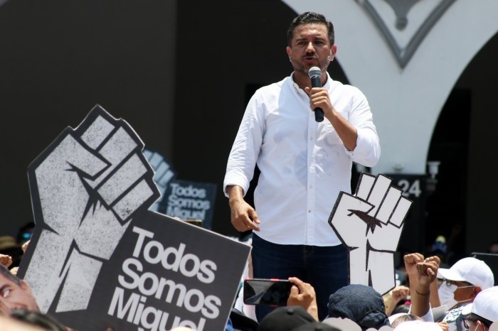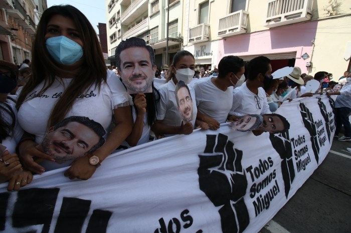 “¡Todos con Miguel! ¡Todos con Miguel! ¡Todos con Miguel!” fue el grito que se escuchó a lo largo de la avenida Independencia e incluso en el zócalo.