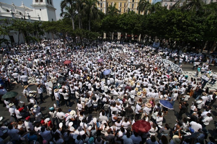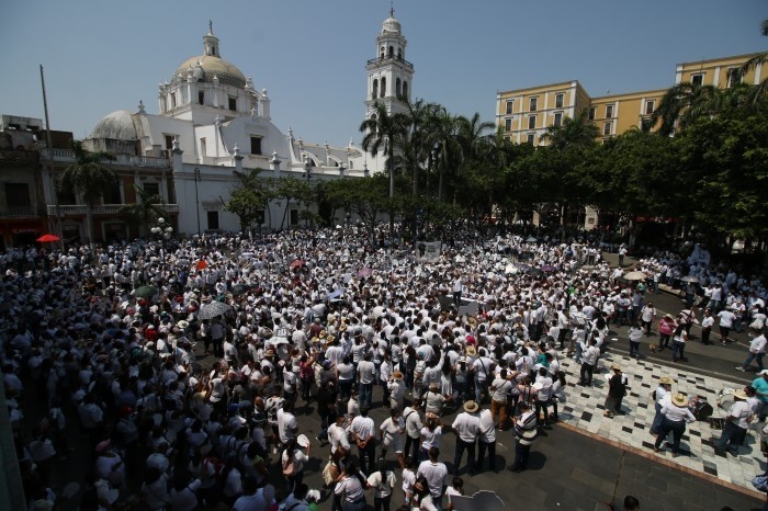 Mujeres y hombres, jóvenes y adultos con vestimenta blanca, se congregaron desde las 10 de la mañana en el Tranvía del Recuerdo, lugar donde inició la marcha, la cual terminó en el zócalo con un mitin donde tomaron la palabra representantes de la sociedad civil y el panista Miguel Ángel Yunes Márquez.