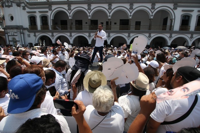 “Esta lucha se ha convertido en la defensa de la libertad de los ciudadanos, la libertad de todas y todos ustedes, de poder hablar, de pensar, de opinar, de exigirle al gobierno resultados y sobre todo y lo más importante de poder elegir libremente quién los gobierna y quién los representa, de eso se trata ya esta lucha; hoy queda perfectamente claro en todo el estado de Veracruz que hay mucho pueblo para tan poco gobierno; Veracruz no merece un dictadorzuelo que quiera regir la vida de la gente”, aseveró.