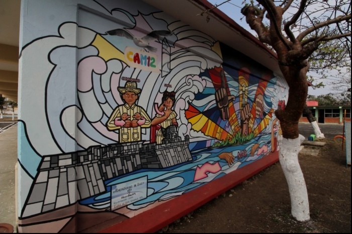 Veracruz, Ver.- (AVC/José Juan García) Autoridades educativas inauguraron el mural “Portadoras de Luz” con temática de la lengua de señas mexicana en el Centro de Atención Múltiple (CAM) número 12, el cual se ubica en la colonia Astilleros de la ciudad de Veracruz. Al respecto, el director del CAM número 12, Marco Antonio Ramírez Cazarín, refirió que el proyecto del mural fue resultado de ganar un concurso convocado por la Dirección de Educación Artística de la Secreatría de Educación de Veracruz. Ramírez Cazarín resaltó que el mural representa lo que es el puerto de Veracruz y un homenaje a la lengua de señas mexicana. “La Dirección de Educación Artística de la Secretaría, en gestión desde el 2019, hizo un proyecto de un concurso que se ganó y gracias a eso tenemos este mural tan hermoso, que representa a la comunidad sorda, es de lengua de señas mexicanas, lo pueden observar, representa lo que es el puerto de Veracruz, el estado, el mar, San Juan de Ulúa, estamos muy orgullosos de tener este mural aquí en la escuela”, expresó. El director del CAM número 12 mencionó que el mural “Portadoras de Luz” fue realizado por los artistas Froylán Jardines y Cosme Casas. Por otra parte, el profesor comentó que el CAM número 12 atiende a 45 alumnos con discapacidad en los niveles de primaria, secundaria y taller laboral. Marco Antonio Ramírez Cazarín precisó que las clases presenciales todavía no se reanudan al 100 por ciento en el plantel, sino que los alumnos asisten por grupos pequeños para evitar que se registren brotes de COVID-19. “Se van rotando los chicos, más o menos de cinco o seis por grupo (…) Tenemos autismo, intelectual, motriz y asperger, esos son los chicos que atendemos”, agregó. Por último, Ramírez Cazarín manifestó que el plantel fue objeto de robos, alrededor de 10, durante la pandemia, además de que hay aulas que tienen filtraciones, por lo que requieren mantenimiento.