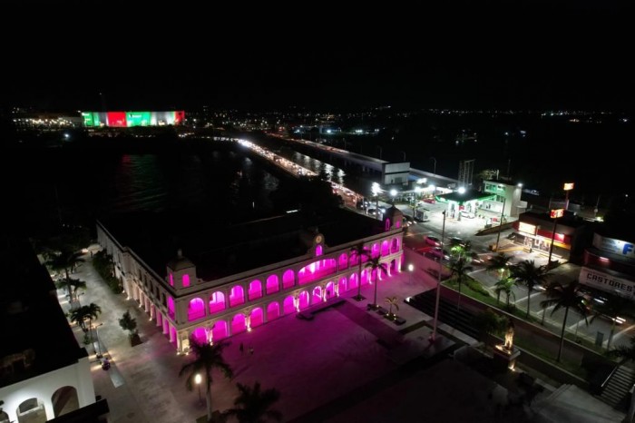 Boca del Río, Ver.- (AVC) La noche de este viernes, el Palacio Municipal de Boca del Rio, se iluminó de rosa en el marco del mes de la lucha contra el cáncer de mama. La presidenta del DIF Municipal, Melina Rivera de Unánue, estuvo acompañada por funcionarias del ayuntamiento, representantes de asociaciones civiles y mujeres boqueñas que se dieron cita en la plaza cívica Benito Juárez. En punto de las 19:30 horas, el palacio municipal se iluminó de color rosa y con esto dieron inicio las actividades de octubre contra el Cáncer de Mama. Rivera de Unanue, indicó que, debido al incremento en el número de casos de Cáncer de Mama, el DIF municipal ha trabajado muy fuerte para lograr que las mujeres con esta enfermedad sean diagnosticadas a tiempo, pues esto aumenta las probabilidades de sobrevivencia. “Lamentablemente Veracruz ocupa el segundo lugar nacional con mayor número de casos de cáncer de mama. Organizaciones civiles, coinciden en que debido a la pandemia, muchas mujeres dejaron de asistir a sus chequeos o no tuvieron la oportunidad de continuar recibiendo tratamientos oportunos, esta situación nos hizo poner manos a la obra para ayudar a quienes más lo necesiten”. En ese sentido, la presidenta del DIF boqueño, dio a conocer los resultados de la Gala Benéfica DIF 2022 en conjunto con Liverpool que se llevó a cabo el pasado 22 de septiembre en el Foro Boca; recordó que el objetivo era lograr recursos para 250 mastografías gratuitas, sin embargo, con beneplácito anunció que se logró superar la meta. “Gracias al trabajo en equipo logramos recaudar la cantidad de 137 mil 700 pesos y estoy muy contenta de poder anunciar que superamos la meta, pues no solo serán 250 las mujeres beneficiadas, sino que estaremos otorgando 400 mastografías gratuitas a nuestras boqueñas durante todo el mes de octubre”. Estos estudios estarán disponibles para las ciudadanas boqueñas, todos los lunes, miércoles y viernes de octubre, en las instalaciones del DIF municipal, en horario de 9 a 14 horas. Finalmente, agregó que además de este beneficio, el alcalde Juan Manuel de Unanue, está gestionando más apoyos para las mujeres de Boca del Rio y el próximo martes estará dando los detalles de la campaña integral “por una detección oportuna”.