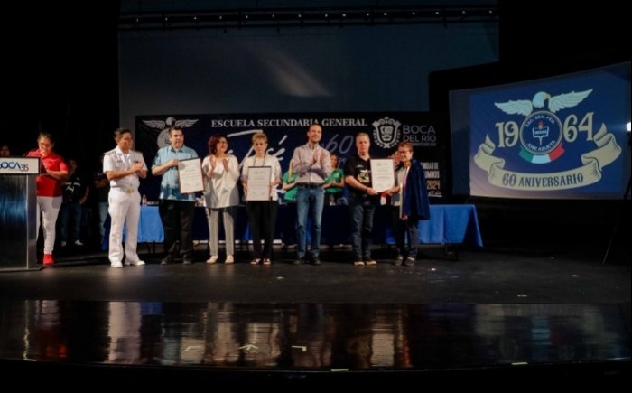 Boca del Río, Ver.- Como invitado de honor, el Alcalde de Boca del Río, encabezó el festejo del aniversario 59 rumbo a los 60 años de la Escuela Secundaria General No. 1 José Azueta, reconociendo su importante contribución en la educación de sociedad boqueña.