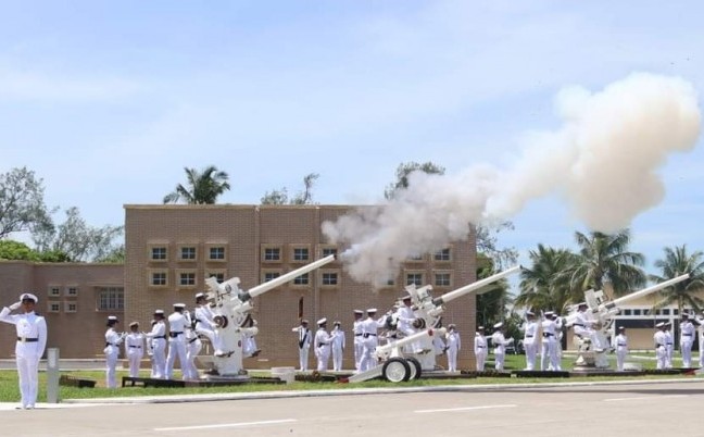 Al concluir la lectura de la lista de héroes de la Heroica Escuela Naval Militar y del Heroico Colegio Militar, siguió el toque de silencio de la banda de guerra y una salva de fusilería ejecutada por la Compañía del Cuerpo de Cadetes.