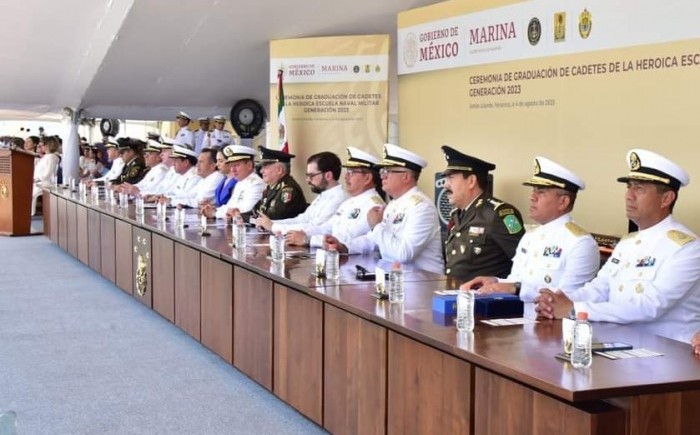 Cabe mencionar que estuvieron presentes en la ceremonia la gobernadora del estado de Colima, Indira Vizcaíno Silva, quien fue la madrina de la generación 2023 y a quien se señala en una investigación como probable responsable de mochar parte del salario de sus colaboradores para apoyar las aspiraciones de la ex jefa del Gobierno de la Ciudad de México, Claudia Sheinbaum; el director de la Universidad del Ejército y Fuerza Aérea, David Rivera Medina; el gobernador Cuitláhuac García Jiménez; el director de la Comisión Federal contra Riesgos Sanitarios (Cofepris), Alejandro Ernesto Svarch Pérez; entre otras autoridades navales, militares y civiles.