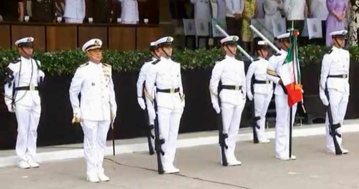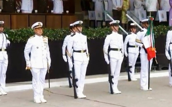 Veracruz, Ver.- (AVC/José Juan García) Un total de 384 cadetes de primer año de la Heroica Escuela Naval Militar juraron bandera ante el presidente de la República, Andrés Manuel López Obrador, en el marco del 110 aniversario de la defensa del puerto de Veracruz del 21 de abril de 1914. Durante la ceremonia, que tuvo lugar en las instalaciones de la Heroica Escuela Naval Militar de Antón Lizardo, López Obrador, el almirante José Rafael Ojeda Durán, oficiales navales y militares, integrantes del gabinete federal y el gobernador Cuitláhuac García Jiménez entregaron el espadín de mando a 21 cadetes de primer año en representación de quienes conforman la generación 2023-2027. Los 384 cadetes -122 femeninos y 262 masculinos- estudian las carreras del Cuerpo General (268), de Infantería de Marina (83) y de Aeronáutica Naval (33). Al dar un mensaje a los presentes, el mandatario federal dijo celebrar participar en la conmemoración de la defensa de la ciudad y puerto de Veracruz del 21 de abril de 1914, donde se recuerda a los cadetes navales y los veracruzanos que ofrendaron su vida en defensa de la Patria. “Veracruz es sinónimo de soberanía y es sinónimo de las fuerzas armadas y en especial de los integrantes de la Marina y de la Armada de México”, puntualizó. Por su parte, el secretario de Marina, José Rafael Ojeda Durán, destacó que los cadetes de primer año de la Heroica Escuela Naval Militar realizaron uno de los actos más emblemáticos de su carrera profesional como marinos navales ante la Bandera, jurando vivir para servir a México. Ojeda Durán recordó a los jóvenes que su propósito de vida será velar por los intereses de la Patria y les recomendó tomar como ejemplo al teniente José Azueta Abad y al cadete Virgilio Uribe Robles, quienes murieron en defensa de México aquel 14 de abril de 1914. “Han dado uno de los pasos más importantes de su vida, les esperan grandes momentos a bordo de este muy querido plantel, así que hagan valer cada día del que aquí viven, inician esta travesía empuñando su espadín y con el honor, el deber, la lealtad y el patriotismo que se requiere para cumplir con esta noble misión de formarse como marinos navales”, insistió. Además, el almirante pidió a los cadetes que su actuar se distinga por la honestidad, la justicia, el respeto a los derechos humanos y una inquebrantable lealtad a la Nación, que respondan con hechos a la confianza y el cariño que los mexicanos depositan en la Secretaría de Marina-Armada de México y que se mantengan listos ante el llamado de la Patria. En representación de quienes juraron Bandera, la cadete María José Castillo Martínez refrendó al presidente de la República el compromiso de velar por el bienestar y la seguridad nacional. “De estar siempre presentes, así como lo hicieron heroicamente quienes nos antecedieron aquel 21 de abril de 1914, tanto usted como las y los ciudadanos de México pueden confiar en que así lo haremos. Como mexicanas y mexicanos actuaremos siempre en favor de la Nación con honestidad, justicia y valentía. Como marinos navales de la Armada de México siempre seremos guiados a buen puerto por el honor, el deber, la lealtad y el patriotismo”, aseveró. Cabe mencionar que la banda sinfónica y el coro de la Secretaría de Marina interpretaron el cuarto movimiento de la novena sinfonía de Ludwig Van Beethoven durante la ceremonia conmemorativa que fue la última que encabezó el presidente de la República en el marco de la defensa heroica de la ciudad y puerto de Veracruz del 21 de abril de 1914.