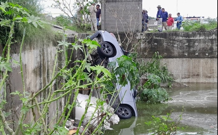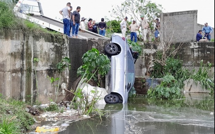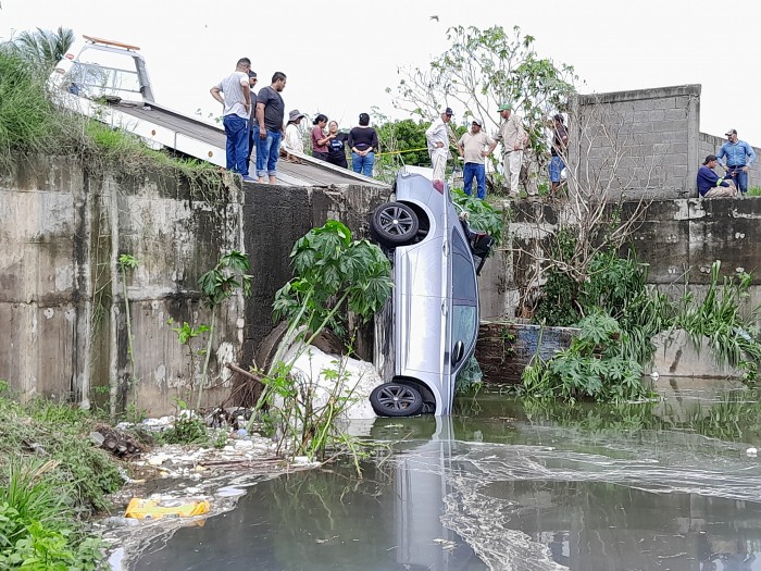 Ahí el auto de la marca Volkswagen tipo Jetta color gris quedó volcado con las llantas hacia arriba y el sacerdote quedó atrapado en el interior sumergido en el agua, donde finalmente murió aparentemente ahogado.