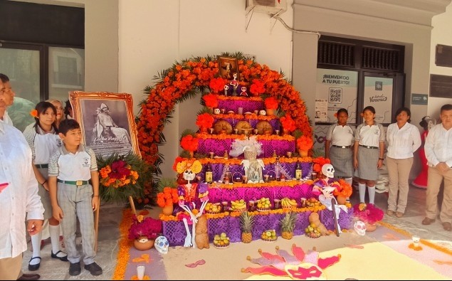 2024-10-31.- En los altares se recordó al músico y poeta Agustín Lara, a la cantante veracruzana Toña la Negra, al ex gobernador Sebastián Lerdo de Tejada y otros. *Participan 10 escuelas primarias, secundarias, telesecundarias y preparatorias.