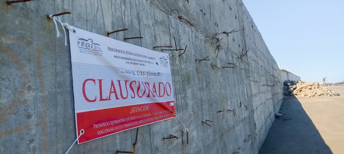 Veracruz, Ver.- (AVC) La Procuraduría Federal de Protección al Ambiente (Profepa) colocó sellos de clausura en una obra que se ejecuta en la orilla de la playa “El destape”, en el bulevar Manuel Ávila Camacho, en el fraccionamiento Costa de Oro de Boca del Río.