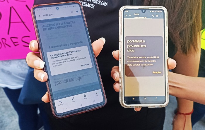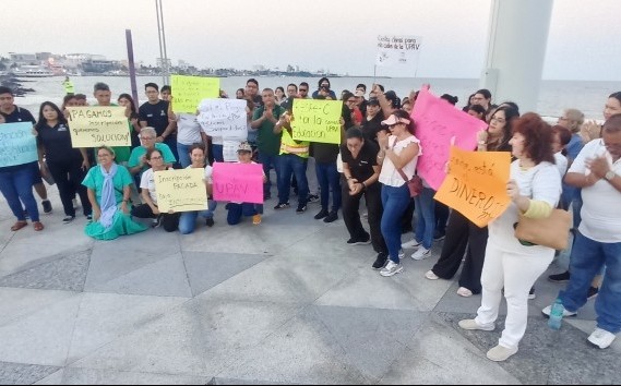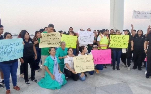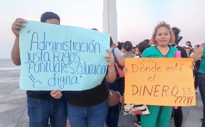 Veracruz, Ver.- (AVC/José Juan García) Alumnos de la Universidad Popular Autónoma de Veracruz (UPAV), que cursan estudios de licenciatura en centros educativos de la zona conurbada, se manifestaron en la plaza de la Soberanía de esta ciudad para denunciar que fueron dados de baja por el sistema electrónico de la institución durante el fin de semana. Se trató de más de cincuenta jóvenes y adultos que respondieron a la convocatoria que se lanzó la semana pasada, primero en apoyo a los asesores educativos a quienes la UPAV no les deposita los pagos correspondientes desde hace aproximadamente seis meses. Sin embargo, el propósito de la manifestación cambió luego de que el sistema dio de baja a la totalidad de los alumnos, los cuales se estima que sean 58 mil a nivel estatal. Los alumnos de la UPAV portaron cartulinas con leyendas como las siguientes: "Inscripción pagada, baja injustificada", "Pagamos inscripción, queremos solución", "Si el pago fue recibido, ¿por qué fuimos suspendidos", "Dónde está el dinero???", entre otras. Al respecto, Claudia Rivera, de la licenciatura de Naturopatía, demandó al recién nombrado rector de la UPAV y a la gobernadora del estado que informen a la comunidad de alumnos por qué se les dio de baja y justo horas después de que se dio el designó a quien estará al frente de la institución. Los alumnos afectados refirieron que el sistema de la UPAV les recomendó consultar a sus directores respectivos sobre la baja. Sin embargo, los directores, como los alumnos, ignoraron el motivo de la baja. En ese sentido, los jóvenes dijeron estar en la incertidumbre, ya que se desconoce con qué estatus aparecerán cuando se reactive el sistema de la UPAV. Incluso, los jóvenes y los adultos advirtieron sobre la posibilidad de que se borre la evidencia de los pagos realizados a la UPAV, que corresponde a la cantidad de tres mil 600 pesos por semestre. "Lo básico es por qué estamos dados de baja, por qué no se les ha pagado (a los asesores educativos) durante más de seis meses (...) Qué tal si nos piden los recibos de toda la carrera, quién va a tener los recibos de tres, cuatro años, y si mi nombre no aparece, cómo justifico", insistió. Cabe mencionar que los alumnos recordaron que el sistema de la UPAV se ha caído en otras ocasiones, pero aclararon que no aparecían como dados de baja como sucedió este fin de semana.