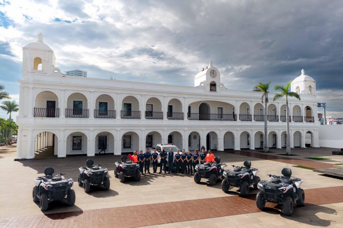 Boca del Río, Ver.- (AVC) Para garantizar la seguridad de los boqueños y de los visitantes que llegan desde distintas regiones de México, se continúa con la modernización de la Dirección de Protección Civil Municipal, con el objetivo de contar con una Fuerza de Tarea plenamente operativa. “Entregamos cuatrimotos y nuevo equipo a la Dirección de Protección Civil para seguir cuidando a Boca del Río y responder mejor ante cualquier situación de riesgo”, comentó el alcalde Juan Manuel Unánue. Estas seis cuatrimotos permiten el acceso a zonas de difícil ingreso o terrenos irregulares donde no es posible entrar con otro tipo de vehículos. Son unidades 4x4 con capacidad de arrastre para movilizar motos acuáticas e incluso apoyar en el rescate de vehículos que quedan atascados en la playa, además de trasladar de manera rápida a personal de Protección Civil. Su uso será fundamental para: -Vigilancia preventiva y labores de rescate. -Recorridos en los 12 kilómetros de costa del municipio. -Atención durante eventos masivos. -Operativos ante fenómenos meteorológicos que impactan a la ciudad a lo largo del año. -Refuerzos durante los periodos vacacionales. Cabe mencionar que durante los cuatro años de esta administración, se ha realizado una importante inversión en el área de Protección Civil, incorporando uniformes, chalecos de seguridad, equipos de radiocomunicación portátiles, boyas para delimitar zonas de escolleras, binoculares, megáfonos, malla plástica, banderas para señalización de playa, entre otros insumos esenciales.