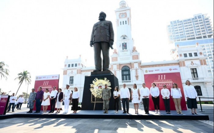 Veracruz, Ver.- (AVC) La alcaldesa de Veracruz, Rosa María Hernández Espejo, acompañó a la gobernadora del estado, Rocio Nahle García, en la conmemoración del 111 aniversario de la promulgación de la Ley Agraria, acto en el que se refrendó el compromiso de los tres órdenes de gobierno con el fortalecimiento del campo y la justicia social, como una tarea vigente y prioritaria para el desarrollo nacional. Durante su mensaje, la presidenta municipal afirmó que el legado agrario sigue vigente en los gobiernos de la Cuarta Transformación y destacó que la política agropecuaria del Gobierno de México, encabezado por la presidenta Claudia Sheinbaum Pardo, impulsa la soberanía alimentaria, el apoyo a pequeños productores y el fortalecimiento del ejido. "El campo hoy vuelve a ser eje del desarrollo nacional". En ese contexto, Hernández Espejo enfatizó que, bajo el liderazgo de nuestra gobernadora, ese compromiso se traduce en desarrollo rural con justicia social, en acompañamiento técnico, impulso productivo y respaldo a quienes sostienen la vida en el campo. La alcaldesa sostuvo que se trabajará de manera decidida para apoyar a la zona rural y fortalecer a los productores locales, reconociendo la importancia de la actividad agricola que se desarrolla en comunidades como San Julián, Santa Fe, Vargas, Paso San Juan y Santa Rita.