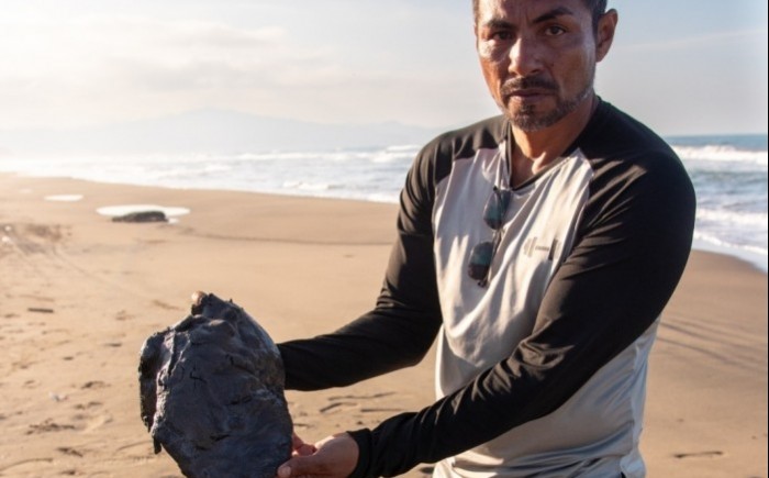 En Playa Carrizal pescadores de las cooperativas El Real y La Barra reportaron manchas de crudo a lo largo de un kilómetro de costa.