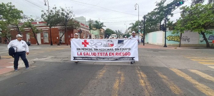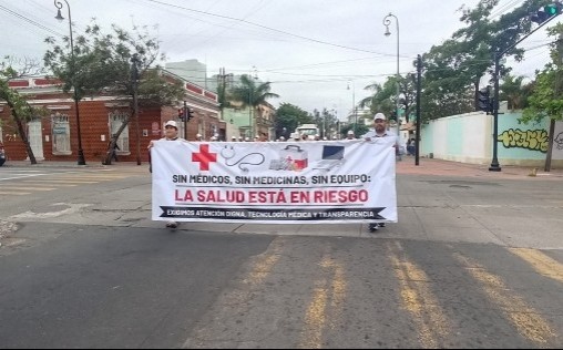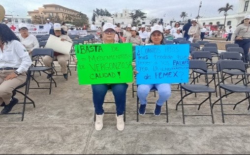 Veracruz, Ver.- (AVC/José Juan García) Trabajadores de la Sección IX del STPRM aprovecharon el desfile conmemorativo del 88 aniversario de la Expropiación Petrolera en la ciudad de Veracruz para exigir un alto a las negligencias que han costado vidas de personal y demandar una mejora en la calidad de los medicamentos y de los servicios hospitalarios. El desfile inició en las instalaciones de la Sección IX del Sindicato de Trabajadores Petroleros de la República Mexicana (STPRM), que se ubican en la esquina de la avenida Miguel Alemán y Alacio Pérez, y finalizó en la conocida Torre de Pemex. Elementos de la Dirección de Tránsito Municipal de Veracruz realizaron cortes a la circulación para facilitar el paso del contingente sobre la avenida Salvador Díaz Mirón, Víctimas del 25 de Junio y Xicoténcatl. El contingente estuvo conformado por varias gerencias, por ejemplo, como la de almacenamiento, transporte marítimo, ductos, entre otras. Incluso, se contó con la participación de personal médico y de enfermería del Hospital General de Pemex de esta ciudad de Veracruz. En el trayecto, trabajadores petroleros portaron y mostraron cartulinas donde plasmaron demandas como las siguientes: "¡No más muertes por negligencia!", "¿Cuántos hijos más tendrán que perder a sus padres por la indiferencia de Pemex?". En otras señalaron deficiencias en el sistema de salud de Pemex: "¡Basta de medicamentos de vergonzosa calidad!", "Servicios médicos de Pemex con especialistas y medicamentos de calidad conforme al c.c.t!", "Recuperar la calidad hospitalaria es una obligación institucional, no una promesa", "La salud de los trabajadores y sus familias es un derecho, no una concesión". Un par de trabajadores portaron una lona donde se hacía referencia a que su salud está en riesgo por la falta de medicamentos, medicinas y equipos: "Exigimos atención digna, tecnología médica y transparencia". Al llegar a la Torre de Pemex, donde se tuvo la ceremonia protocolaria por el 88 aniversario de la Expropiación Petrolera, los trabajadores continuaron portando las cartulinas, pero las guardaron después de unos minutos. Por último, representantes de los medios de comunicación intentaron entrevistar a los dirigentes sindicales sobre la problemática que denunciaron los trabajadores, pero se negaron a dar declaraciones sobre tales temas.