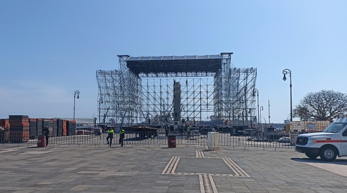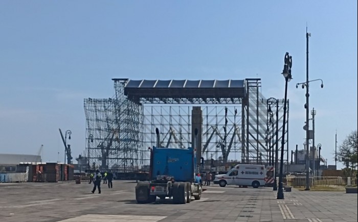 Veracruz, Ver. (AVC/José Juan García).– Inició la instalación del escenario donde se presentará el DJ neerlandés Martin Garrix, programado para este sábado 18 de abril en la Macroplaza del Malecón de Veracruz.