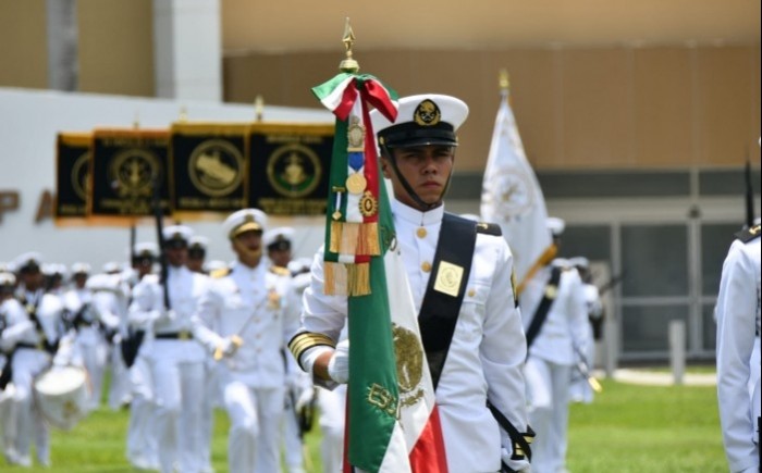 “Jurar Bandera es el compromiso más sagrado que adquirimos con nuestra Nación como mexicanas y mexicanos, como futuras y futuros oficiales navales; es el acto en que empeñamos nuestra palabra de honor para respetar, defender y ser fieles a nuestra enseña nacional hasta ofrendar la vida misma de ser necesario”, añadió.