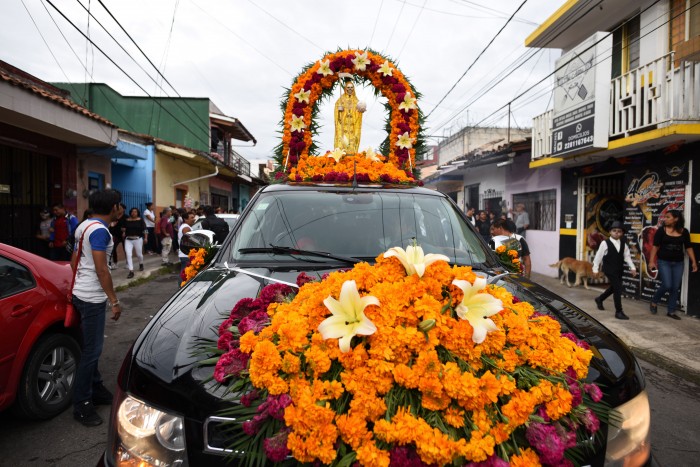 Al igual que en las procesiones en honor a otros santos, la gente que viajaba en los automóviles para acompañar a “La Florecita”, los adornaron con globos, tiras brillosas, luces de colores, y se tomaban fotografías.