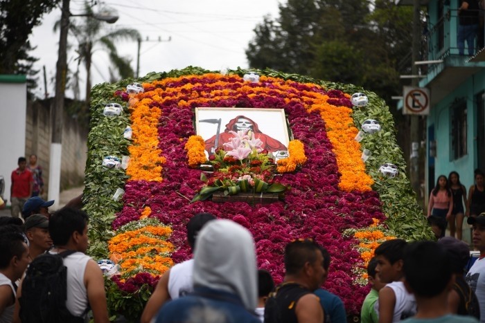 El organizador de la procesión, Benjamín Olmos Colorado expresó que a la Santa Muerte se le festeja el 01 de noviembre de cada año, por esta razón hicieron el arco floral y lo colocaron en el panteón, lugar donde habita ella.