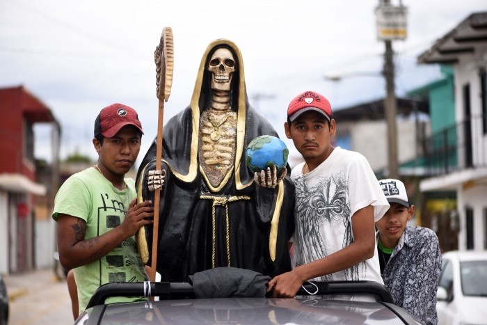Las camisetas de los adoradores, también tenían una fotografía de la Santa Muerte y la leyenda de “Cuando tú quieras nos vamos”.