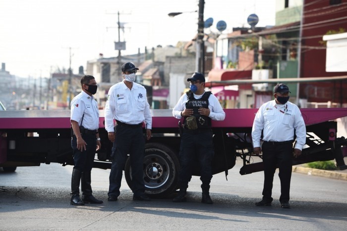 Xalapa, Ver. (AVC/Perla Sandoval) El Ayuntamiento de Xalapa instaló filtros de seguridad este fin de semana en la colonia Revolución, uno de los puntos de mayor afluencia de personas en la capital del estado. El delegado de Tránsito en Xalapa, Miguel Ángel López Ortega dio a conocer que se cerró la vialidad de la avenida Atenas Veracruzanas, la avenida México hasta la escuela primaria “Carlos A. Carrillo” a la altura de la calle Fray Bartolomé de las Casas. Señaló que los filtros se activaron desde las 6 de la mañana para reducir la movilidad en esa zona de la ciudad y evitar contagios por coronavirus COVID-19. “Hasta el momento hemos tenido una actitud de solidaridad de la ciudadanía, este filtro lo instalamos a las 6 de la mañana este sábado y mañana domingo, en este operativo en la ciudad están participando 70 elementos de tránsito del estado”. Dijo que participan elementos de Transporte Público, Policía Estatal, Policía Municipal y Protección Civil Municipal, además de la Guardia Nacional con actividades de proximidad social. Actualmente se han instalado al menos 20 filtros en Xalapa y Emiliano Zapata, en la calle principal de Las Trancas, además del cierre de las calles que llevan al centro de la ciudad. “Estamos emitiendo una recomendación para que respeten las medidas de sana distancia, las medidas sanitarias, y fundamentalmente para que se genere conciencia e inhibir el tráfico de vehículos”.