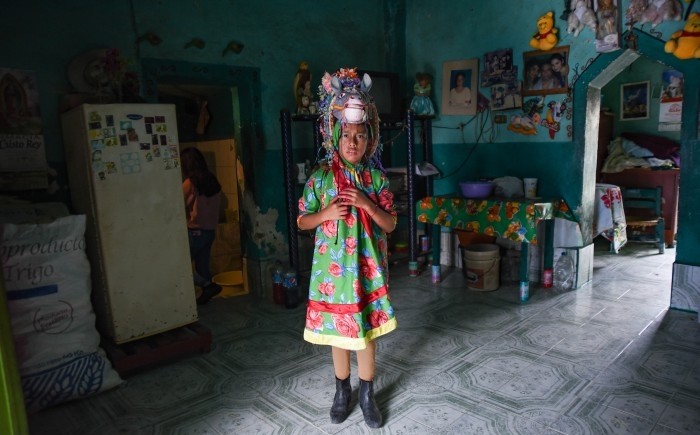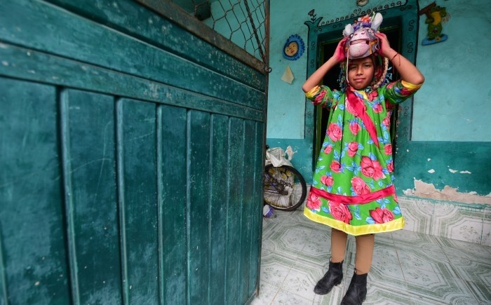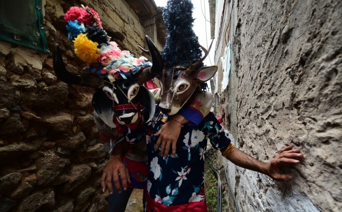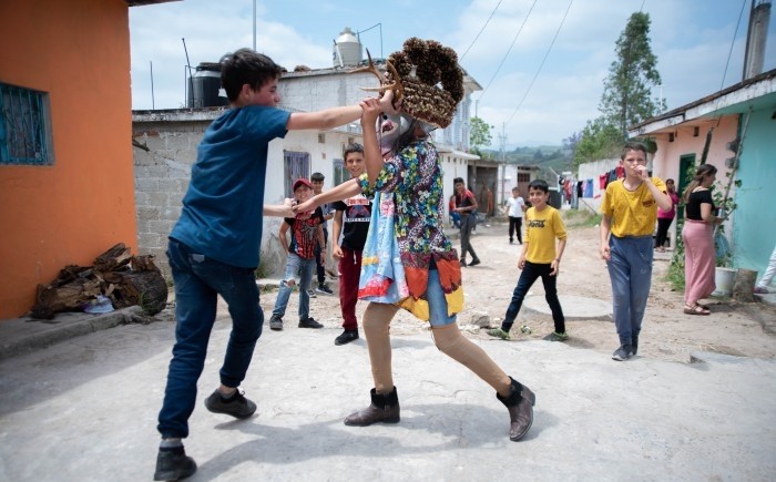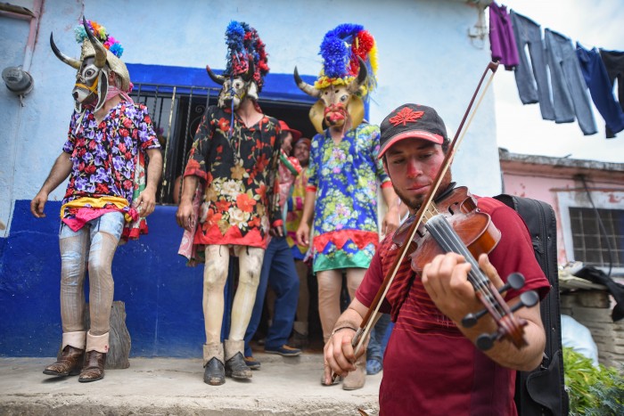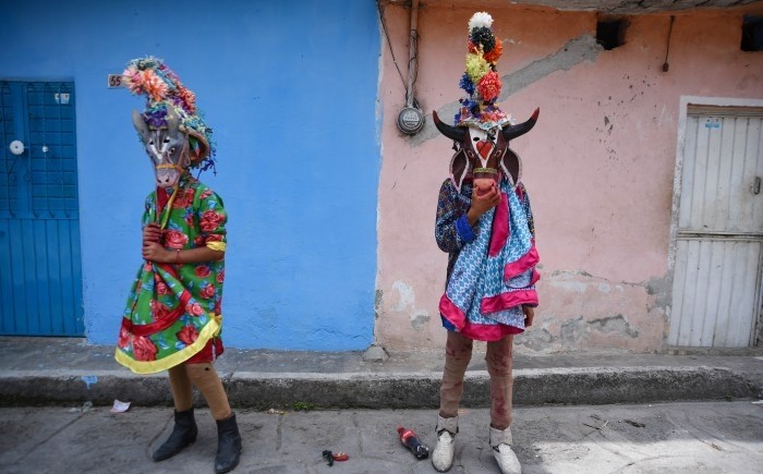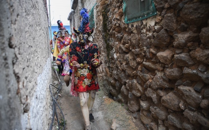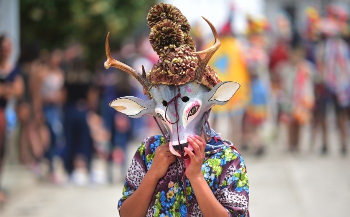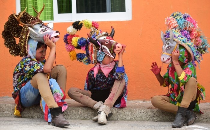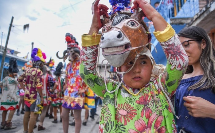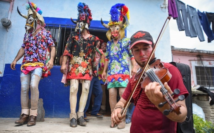 Este martes los habitantes salieron a danzar a las calles, ataviados con sus trajes tradicionales de gran colorido, máscaras de toro, sus penachos y la tradicional banda de viento.