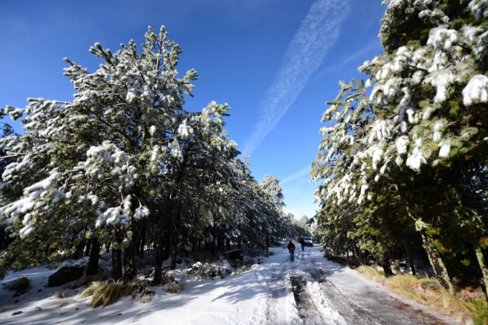 A lo largo del camino se puede observar a los visitantes disfrutar del paisaje tomando fotos, caminando y jugando con la nieve, un espectáculo natural, que según los datos de Protección Civil, hacía más de tres años no se veía tan intenso.