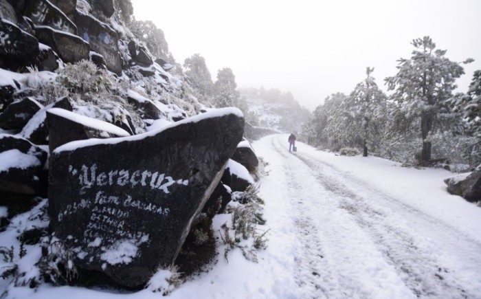 Perote, Ver.- (AVC/Flavia Morales) A poco más de 3 mil 700 metros sobre el nivel del mar, se puede admirar la nevada que cae en el Parque Nacional Cofre Perote que cubrió de blanco todo a su paso.