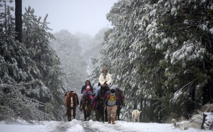 Para los lugareños de comunidades cercanas al Parque Nacional como El Conejo y Los Pescados, la nevada es una oportunidad para ganar un poco de dinero. Es el caso de Pedro y su familia quienes cobran entre 100 y 150 pesos por recorridos en caballo por los caminos de nieve que alcanzan los cuatro centímetros de espesor.