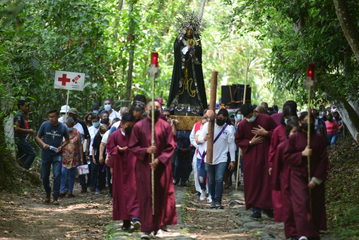 Coatepec, Ver.- (AVC) Durante el viacrucis que este viernes la Parroquia de San Jerónimo llevó a cabo del atrio parroquial al Cerro de Las Culebras, se pidió por los enfermos, víctimas de injusticias, los desempleados y quienes perdieron seres queridos.
