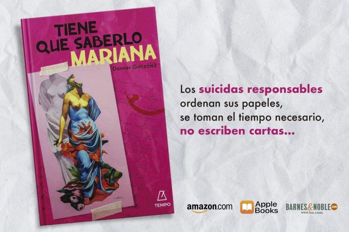 “Tiene que saberlo Mariana”, editada por Tempo, es la nueva apuesta literaria del abogado y escritor Danner González, conocido por obras como “Amores postmodernos” y el libro de ensayos “Larga noche de resurrecciones”.
