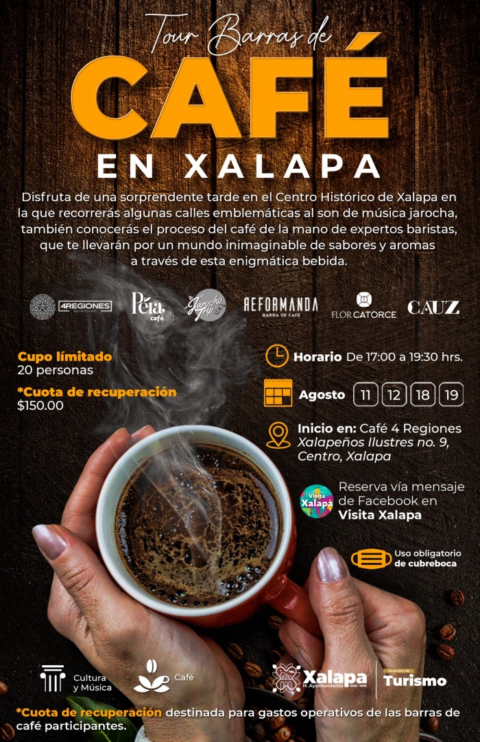 Para conocer del proceso que se realiza para degustar una taza del aromático, este jueves y viernes se realizará el tour Barras de café, por cuatro establecimientos de Xalapa, con el acompañamiento de un grupo de Son Jarocho.