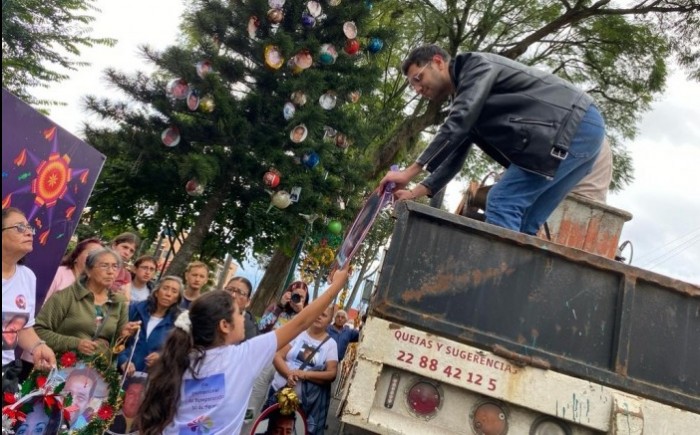 La integrante del colectivo “La Esperanza del Reencuentro” María Antonieta Muñoz Roa informó que la colocación de las esferas con la fotografía de sus familiares desaparecidos es una muestra de cariño y recordar que siguen ausentes en la cena de Navidad.