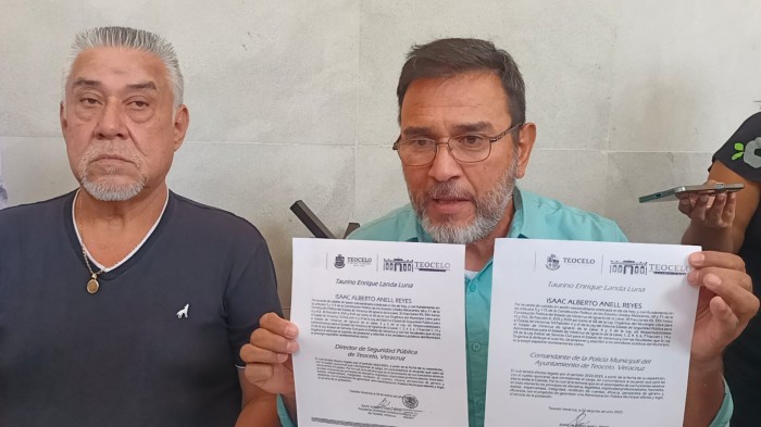 Xalapa, Ver.- (AVC/Verónica Huerta) El exdirector de Seguridad en Teocelo, Taurino Enrique Landa Luna denunció que el alcalde Isaac Alberto Anell Reyes y la síndica Daniela Villegas Olmos lO obligaron a renunciar por negarse a participar o encubrir los presuntos delitos de narcomenudeo, extorsión, y secuestro que presuntamente comete Oliverio Alarcón López, esposo de la servidora pública en mención. En conferencia de prensa, celebrada en Xalapa junto a su abogado defensor, Taurino Landa informó que en marzo del 2022, Oliverio Alarcón López “un hombre conocido por dedicarse a la política” lo invitó a trabajar en el municipio de Teocelo. Es así como el 18 de marzo del 2022, el alcalde Anell Reyes entrega el nombramiento de director de Seguridad municipal en Teocelo; por su parte Oliverio Alarcón le informa que en ese lugar hay problemas con una banda delictiva que se dedica a la distribución de drogas, secuestro, extorsión y cobro de piso entre otros delitos. “Me pongo a hacer investigación de inteligencia, cuento con carrera policiaca trabajé desde los 18 años en la Policía Federal de Caminos y luego en la Policía Judicial del Distrito Federal, y logro desmantelar la banda delincuencial, en la refriega muere el lider de la célula y metemos a la cárcel a toda la célula”. Posterior, dijo el exdirector de la policía municipal de Teocelo, “Oliverio me invita a trabajar para que distribuya droga en Teocelo, tuvimos una diferencia y nos dejamos de hablar. Yo dije: este joven me va a hacer un problema y lo vuelvo a citar y lo grabo y le hago de conocimiento al alcalde Isaac Anell Reyes lo que estaba pasando con el esposo de la Síndica”. Posterior, la síndica Daniela Villegas Olmos acusó a Taurino Landa de acoso, y en respuesta el alcalde de Teocelo dijo a la Síndica que el director de la policía municipal era el trabajador más leal que tiene. “El alcalde hace una junta y dijo que yo era el único, era el empleado leal. Luego la sindica pide mi renuncia al decir que yo la acosaba y que tenía un trato con un tal Grillo que me daba dinero. Luego le hablan a la maestra Zayra, (la Síndica Suplente Zayra Larios Alducin) y llega el marido de la Síndica Oliverio Alarcón López y me obligan a renunciar”.